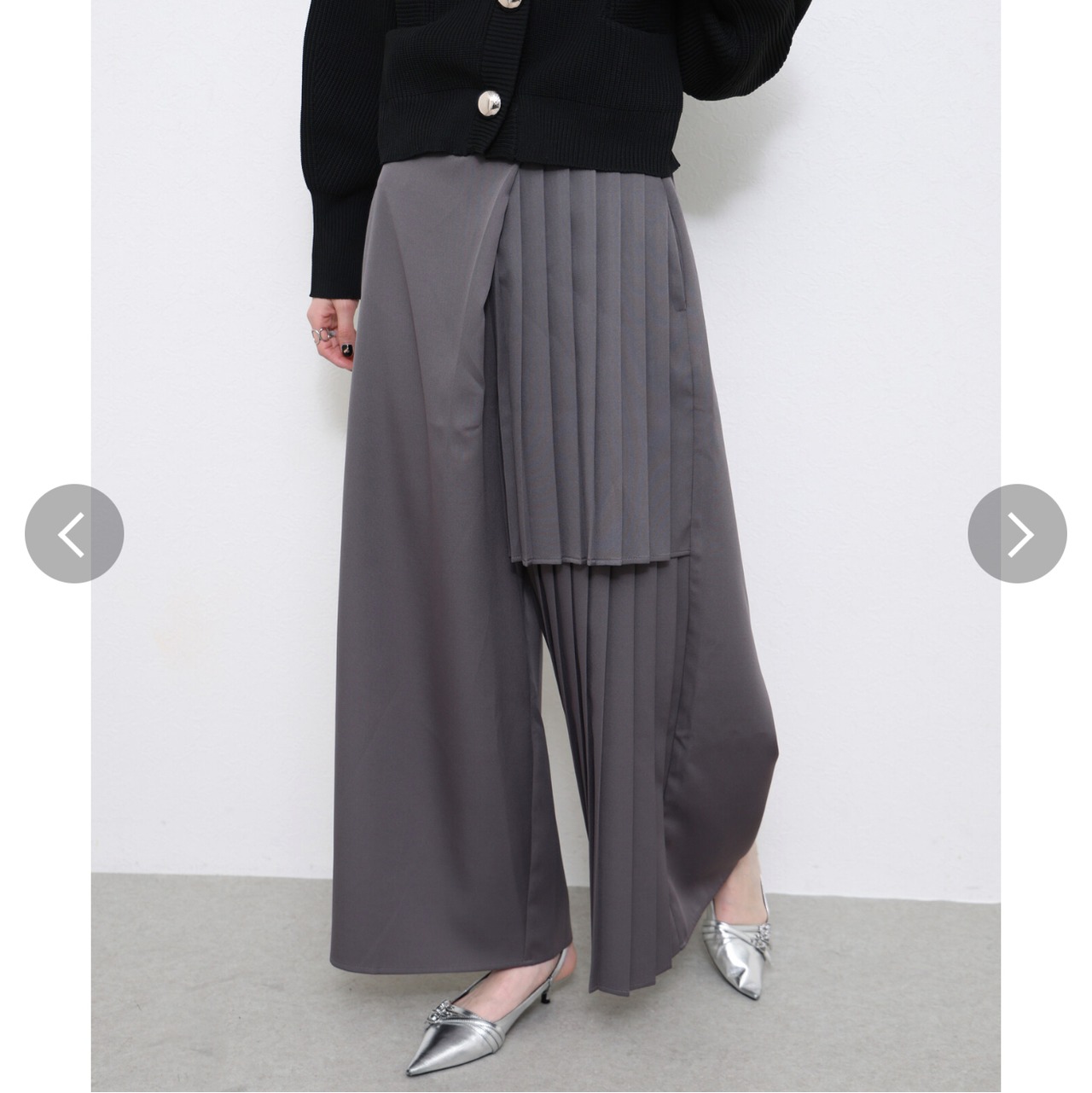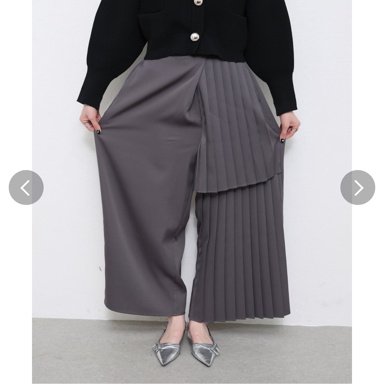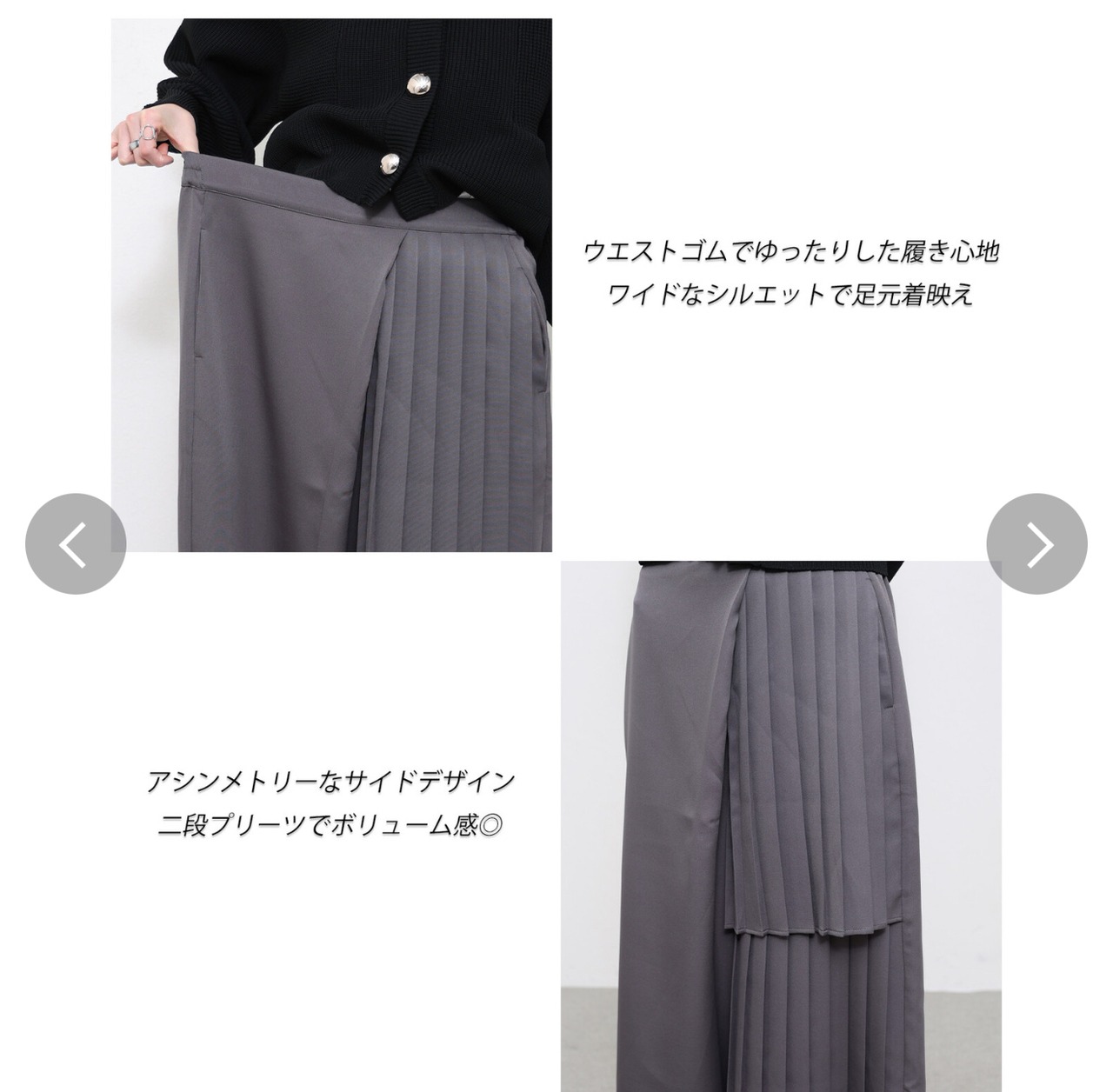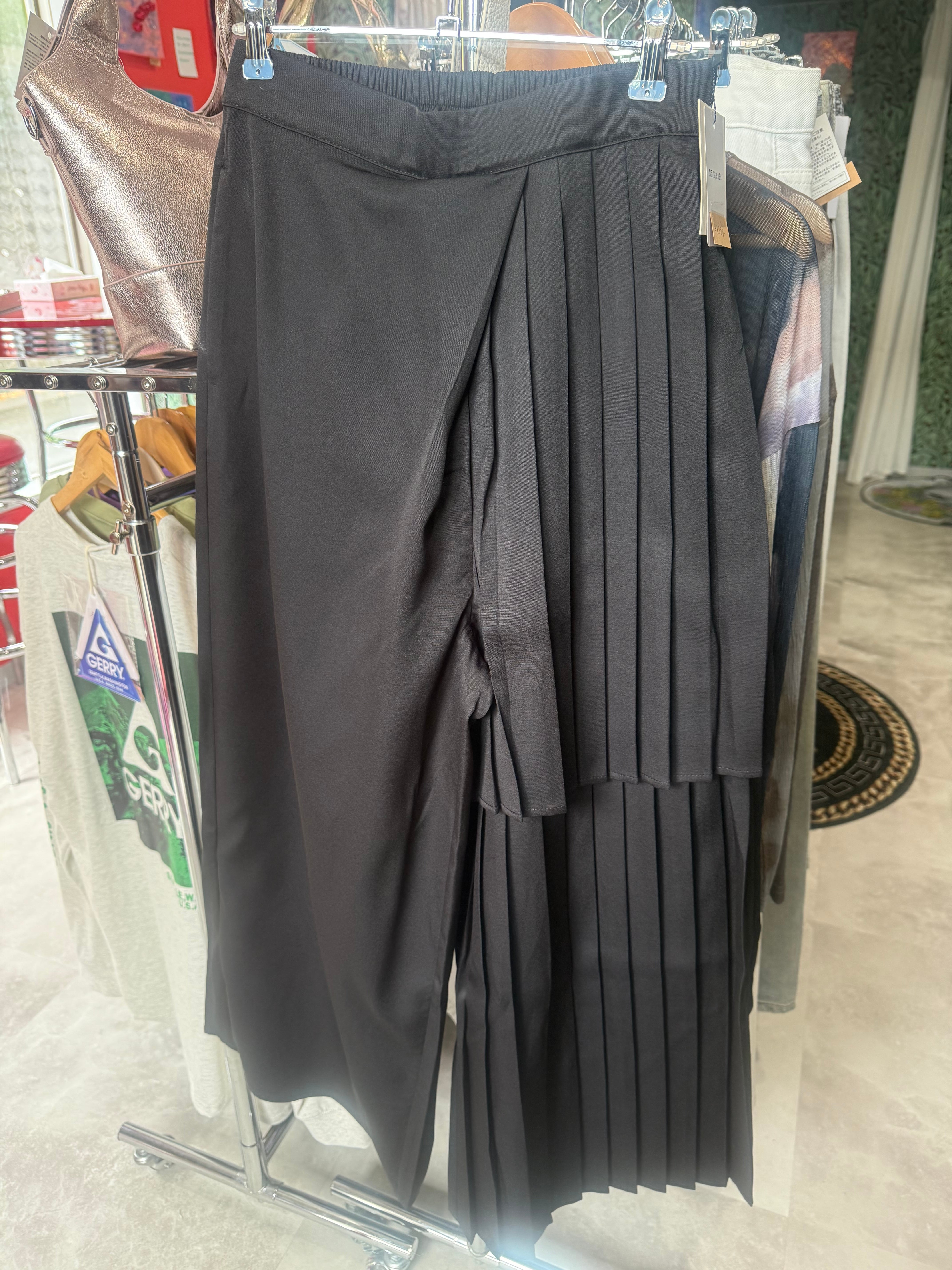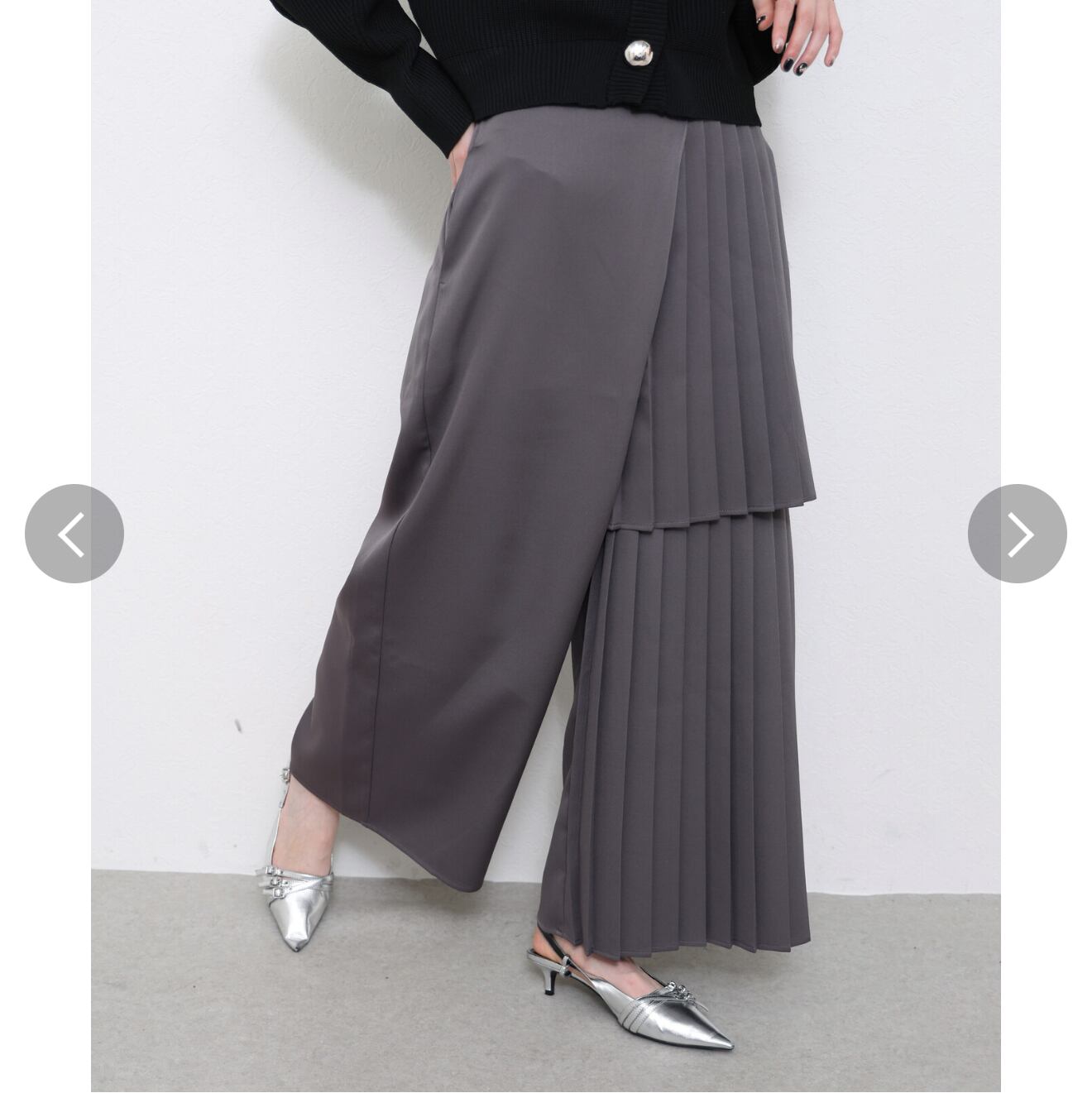 片面プリーツパンツ