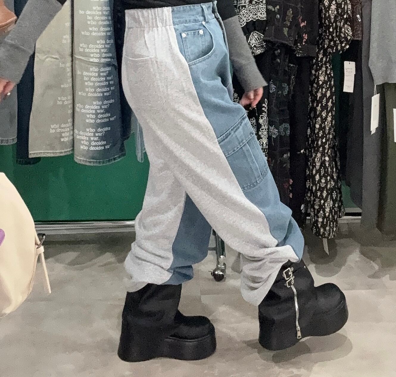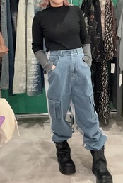 カーゴデニム×スウェットドッキングパンツ