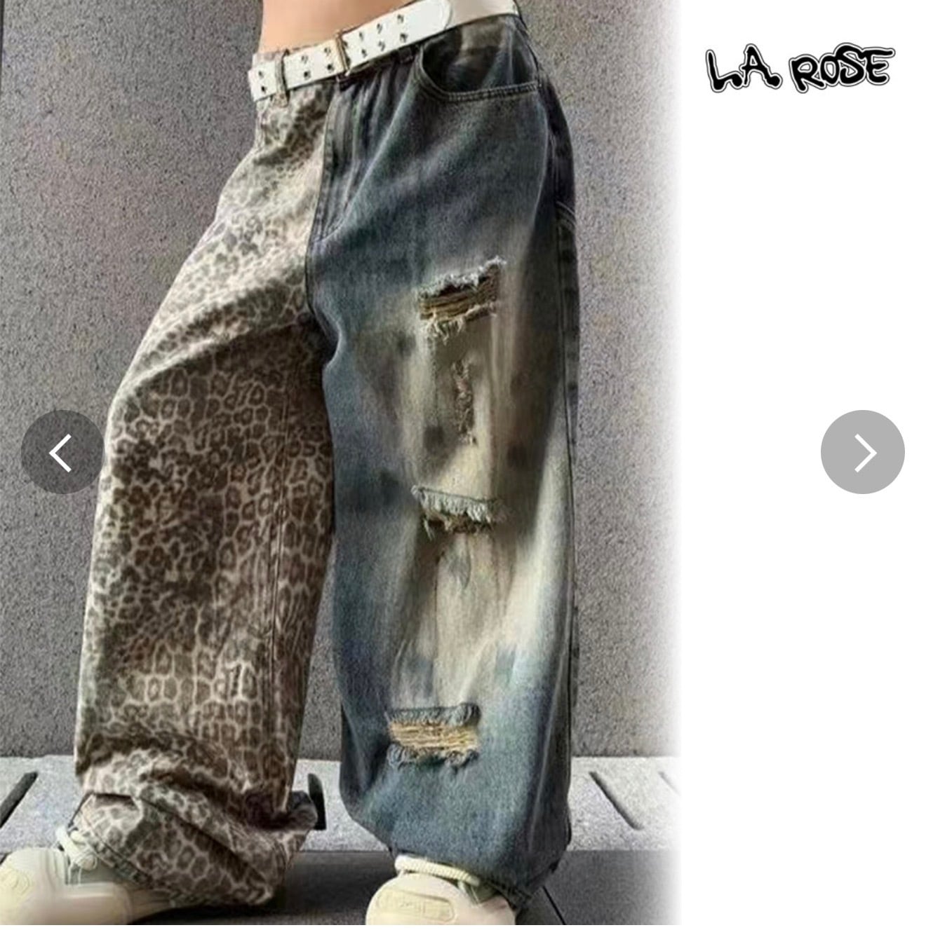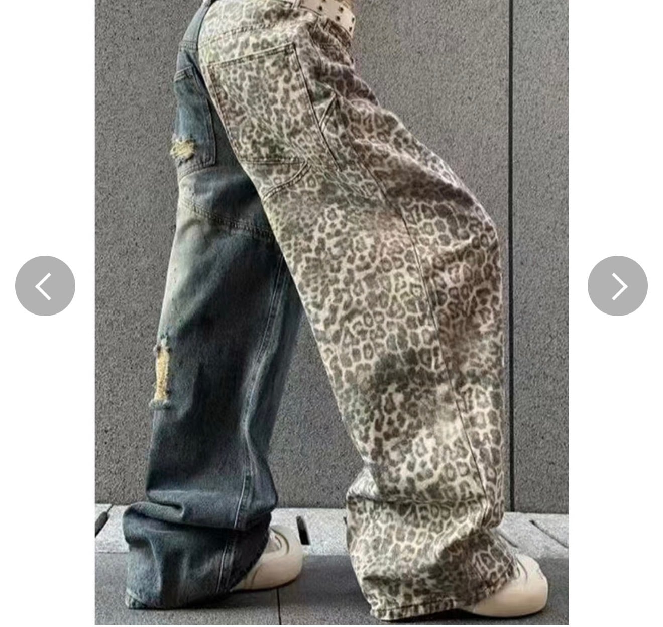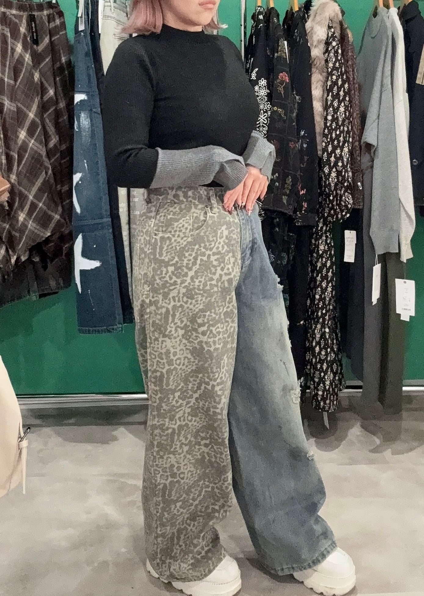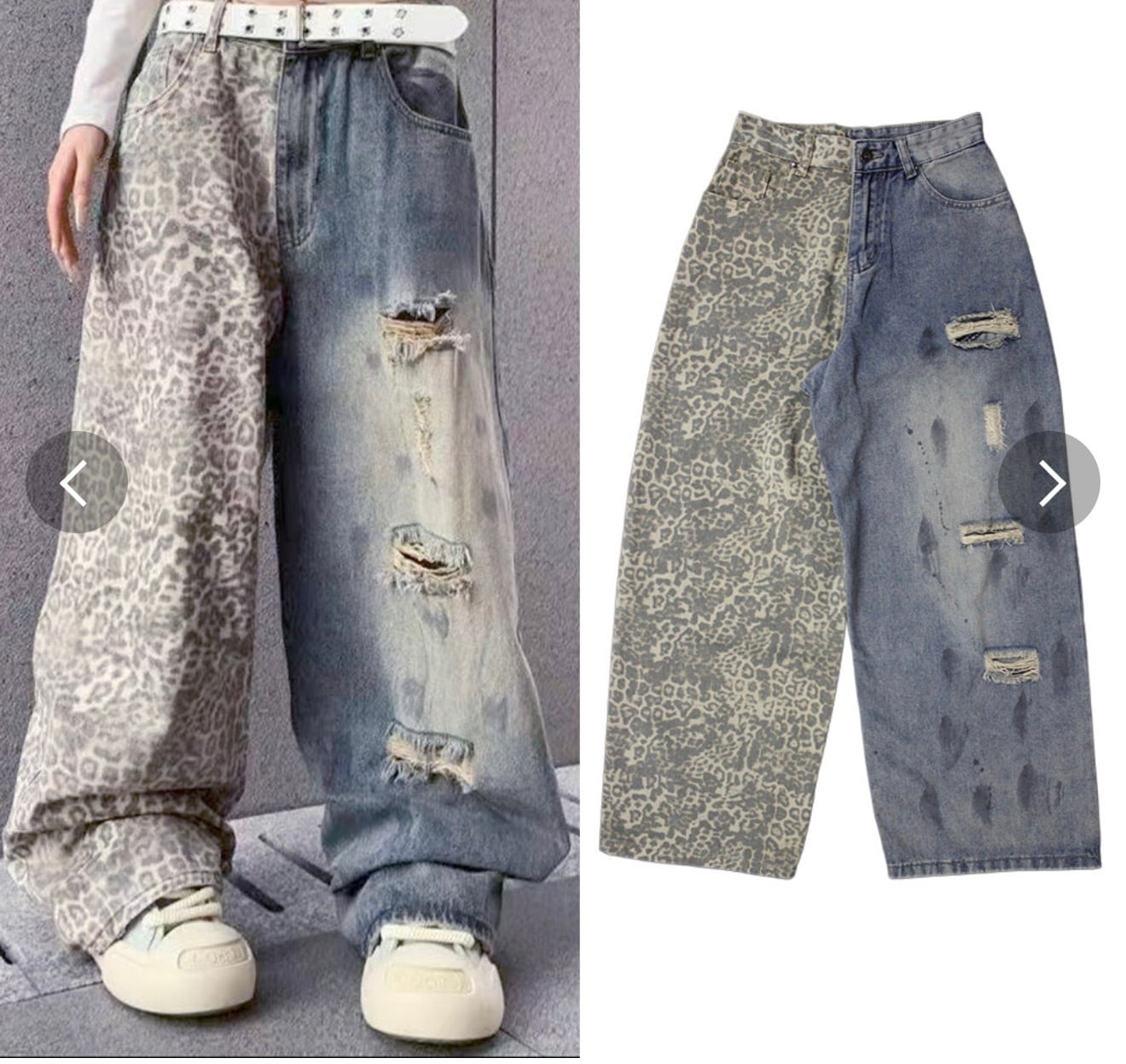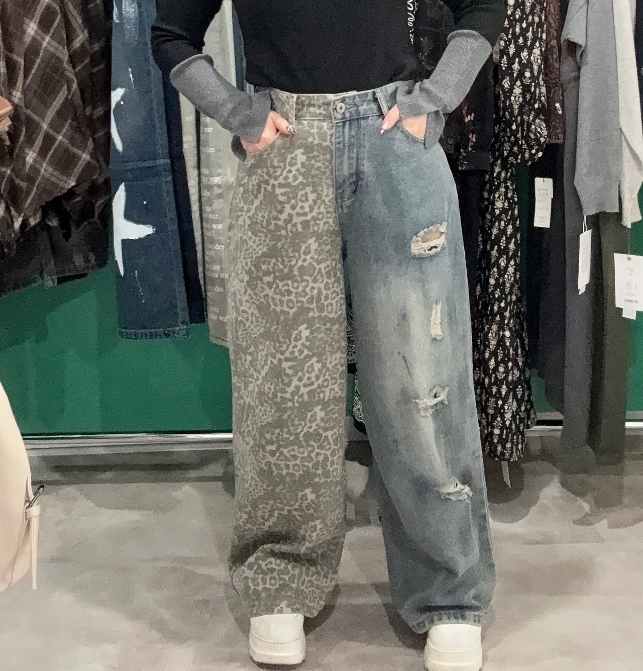 アシンメトリーデニムダメージデニム×レオパードデニム