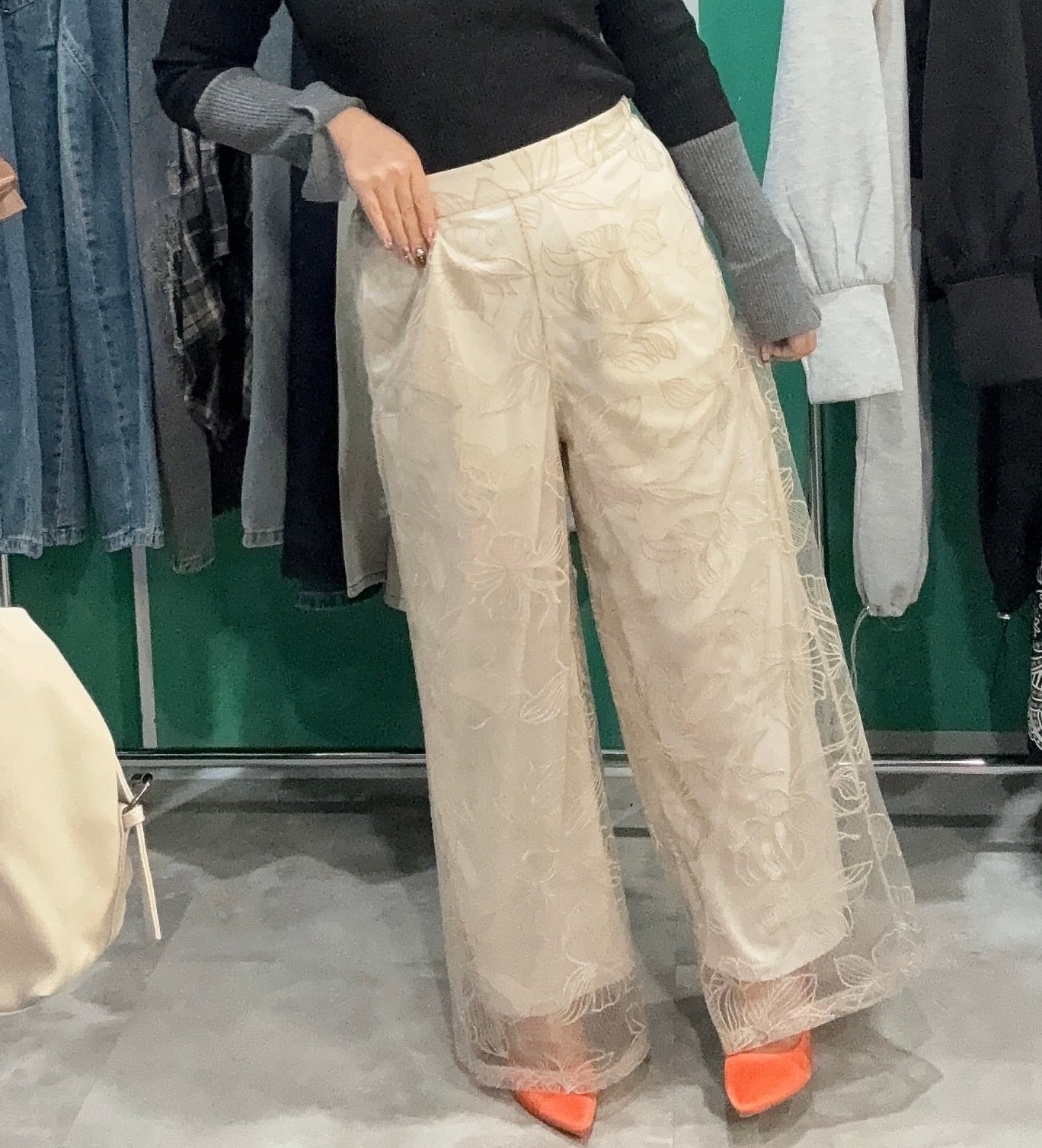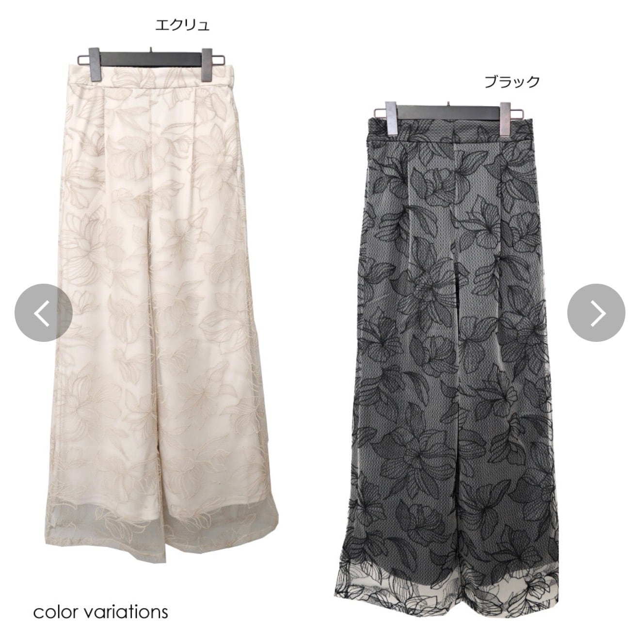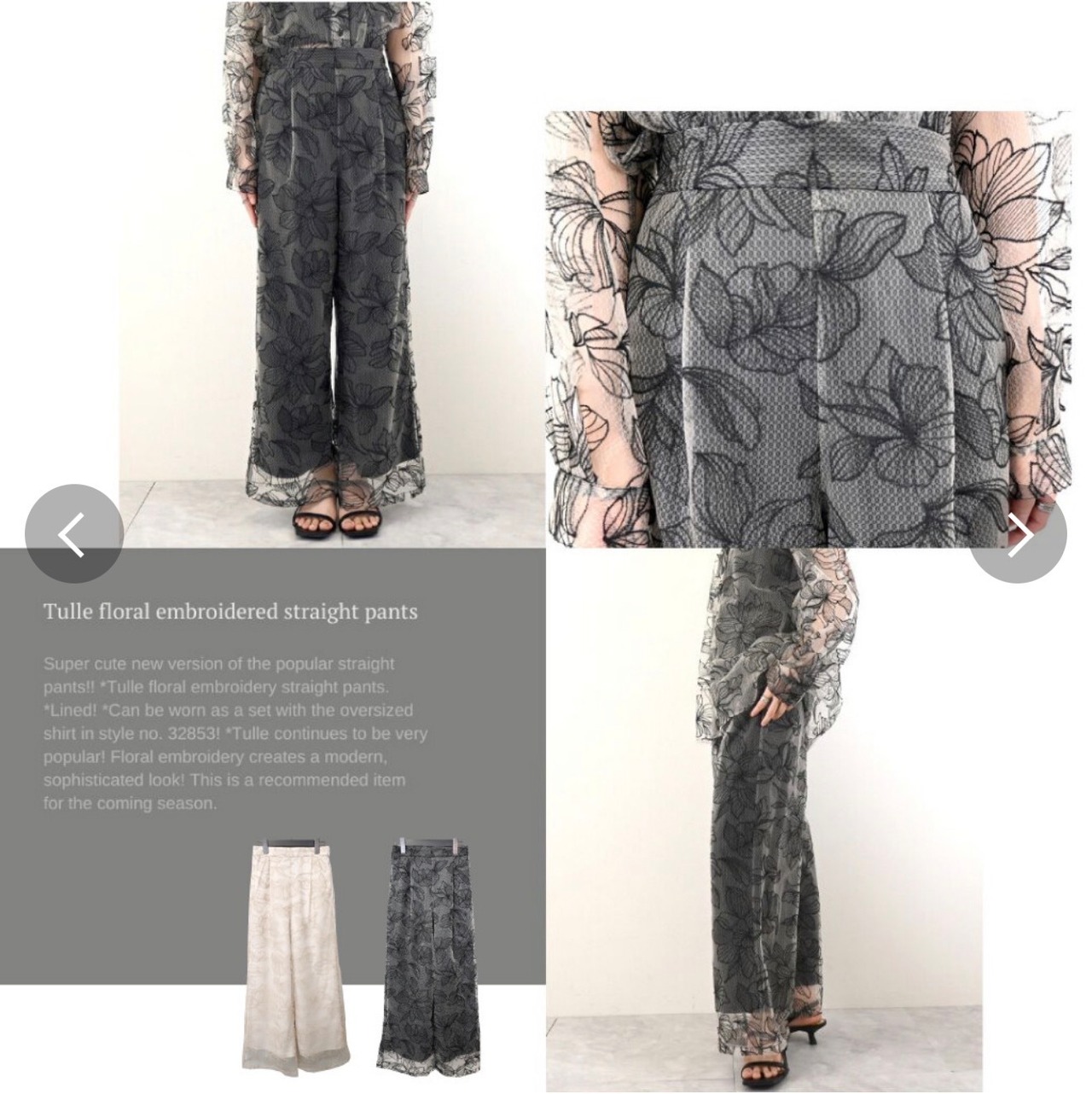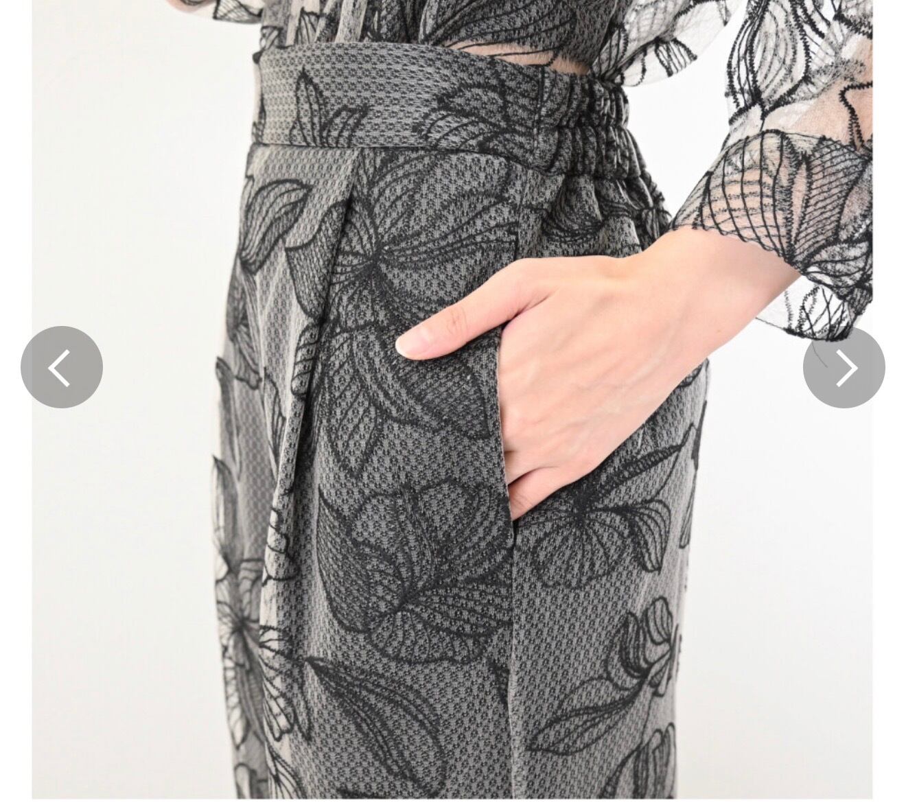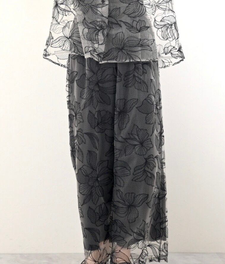 チュール花柄刺繍ストレートパンツ