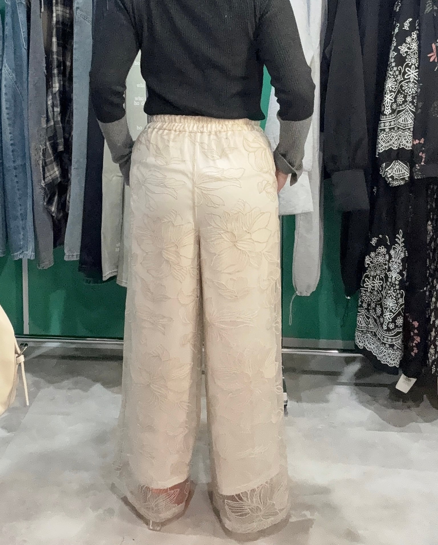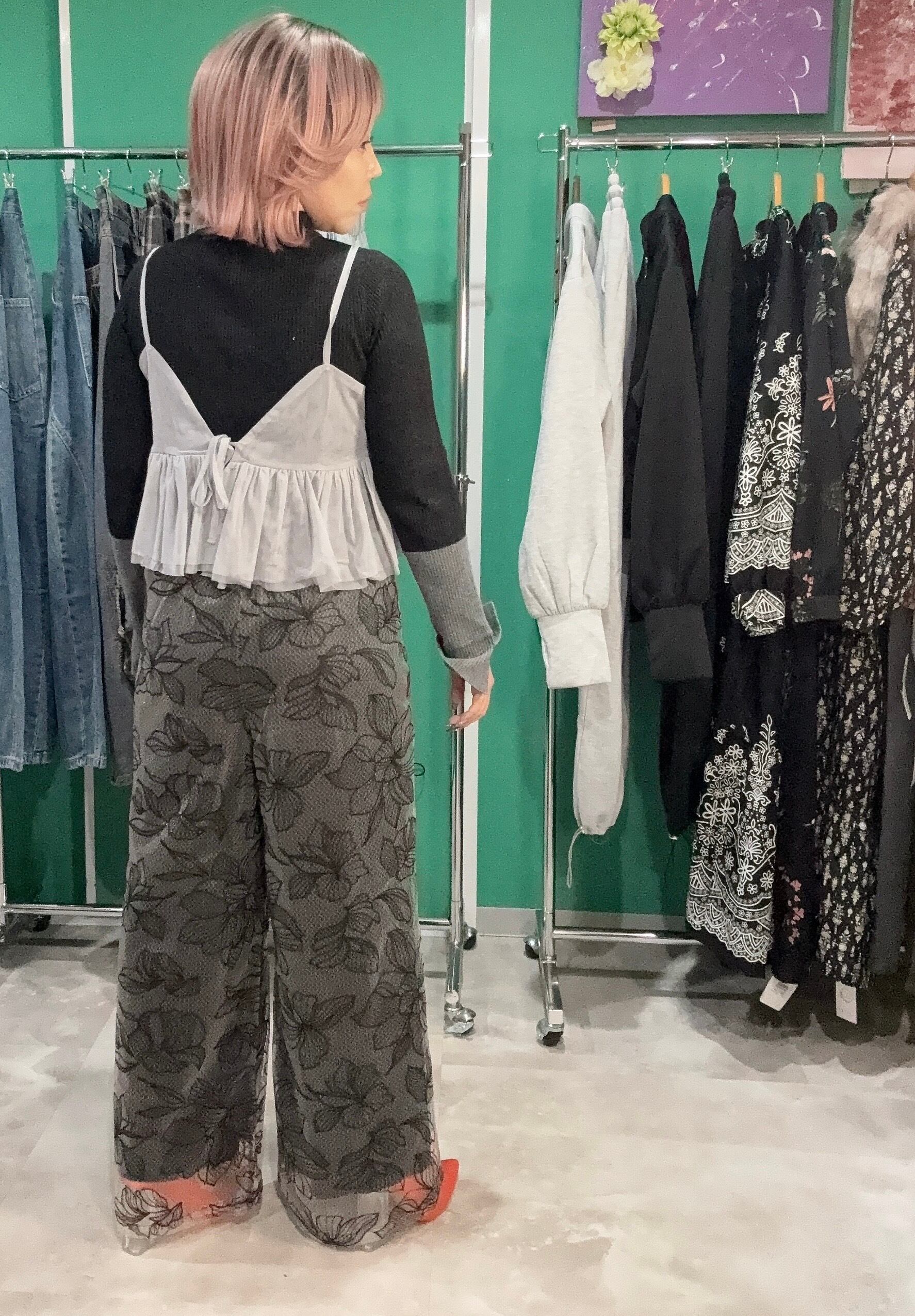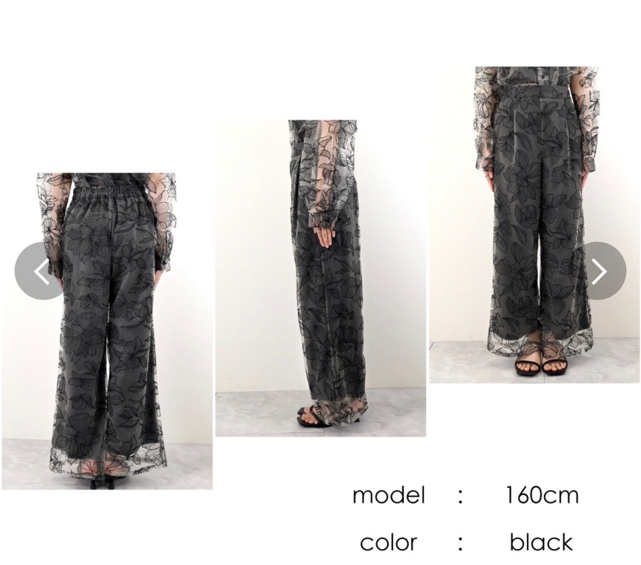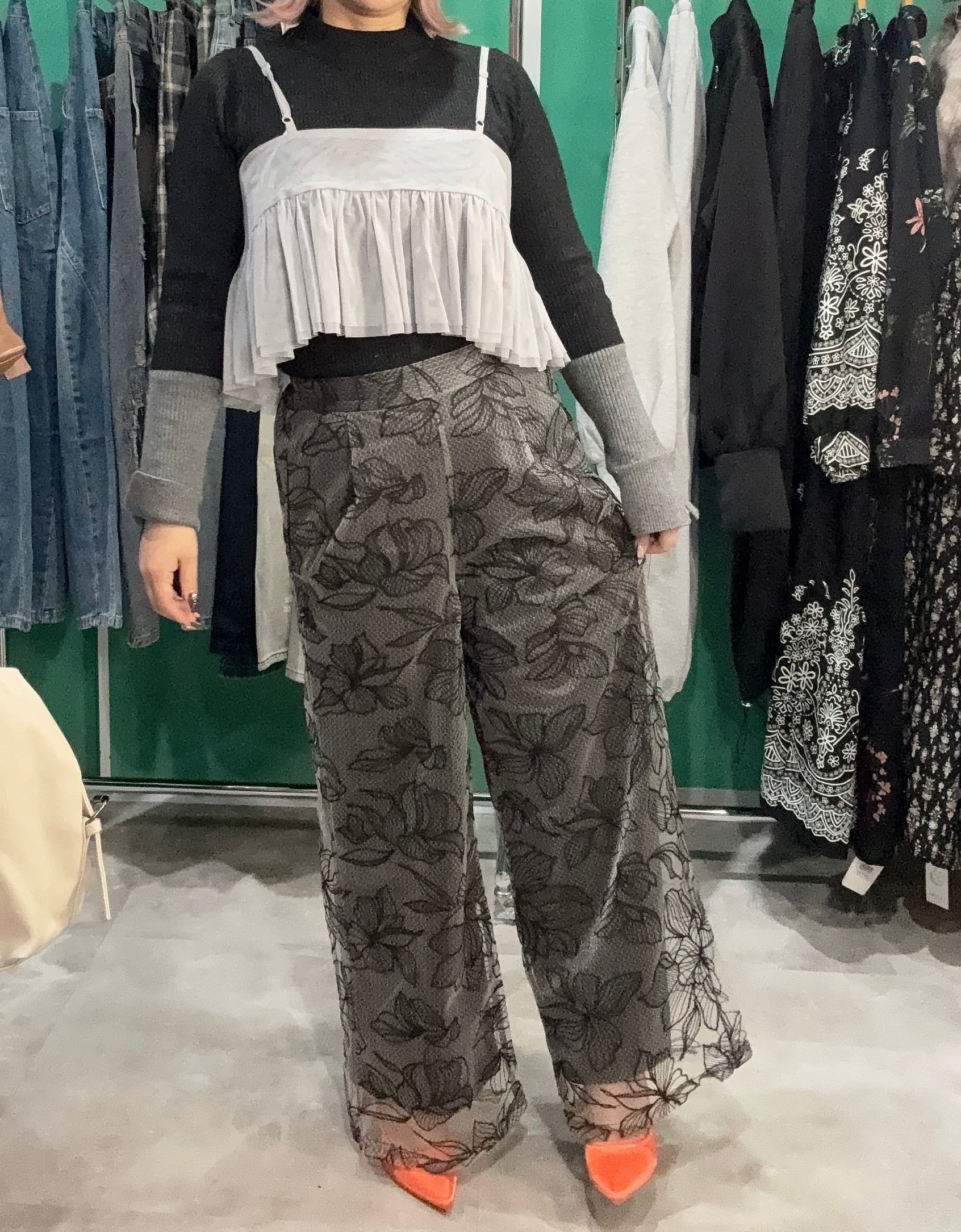 チュール花柄刺繍ストレートパンツ