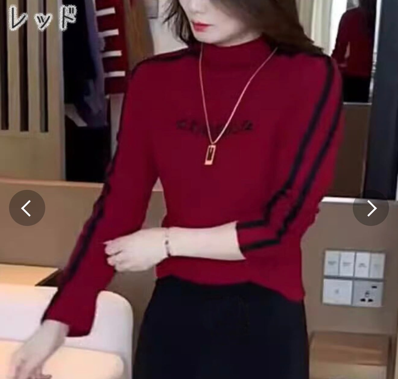 肌触り極上!ハイネックロゴ刺繍ライントップス | M-CLOSET