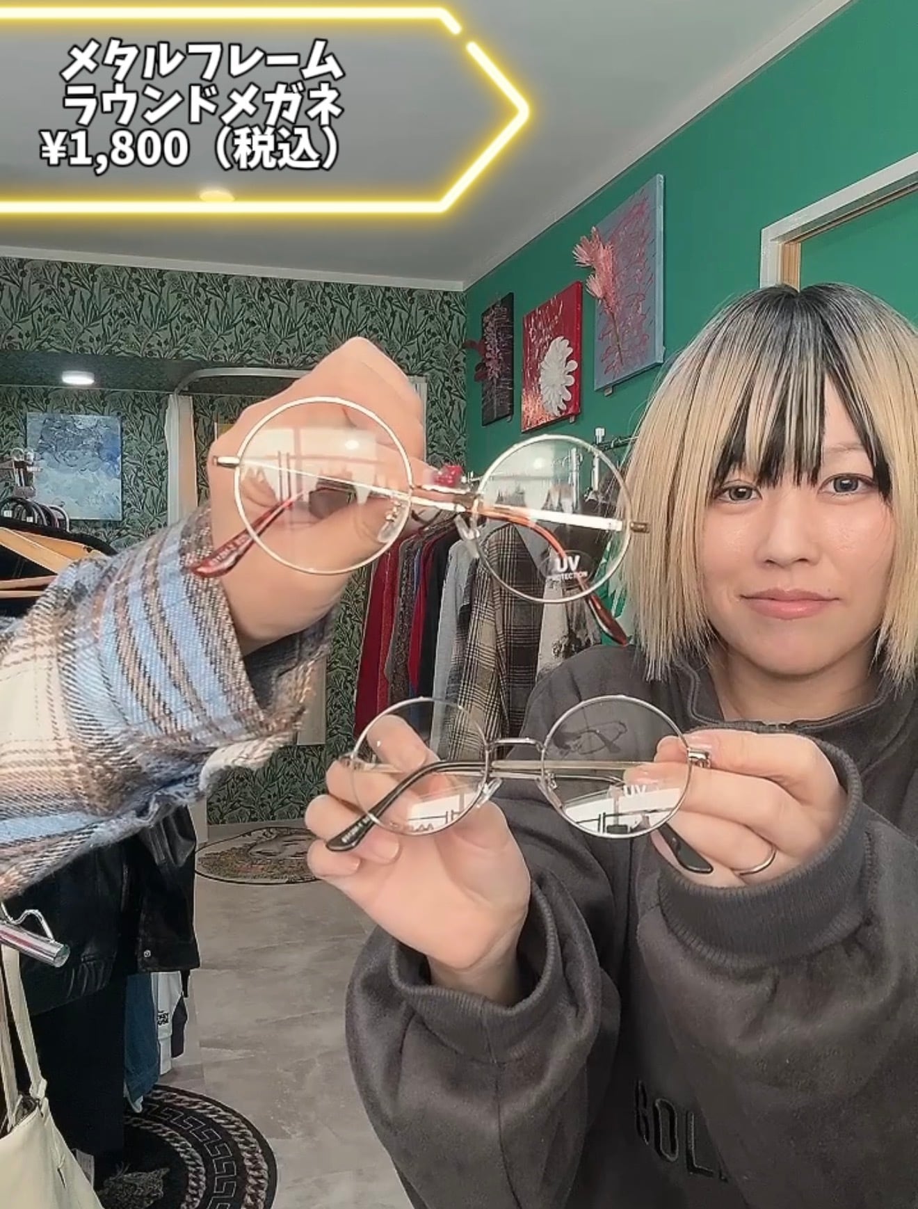 メタルフレームラウンドメガネ(UVカット)