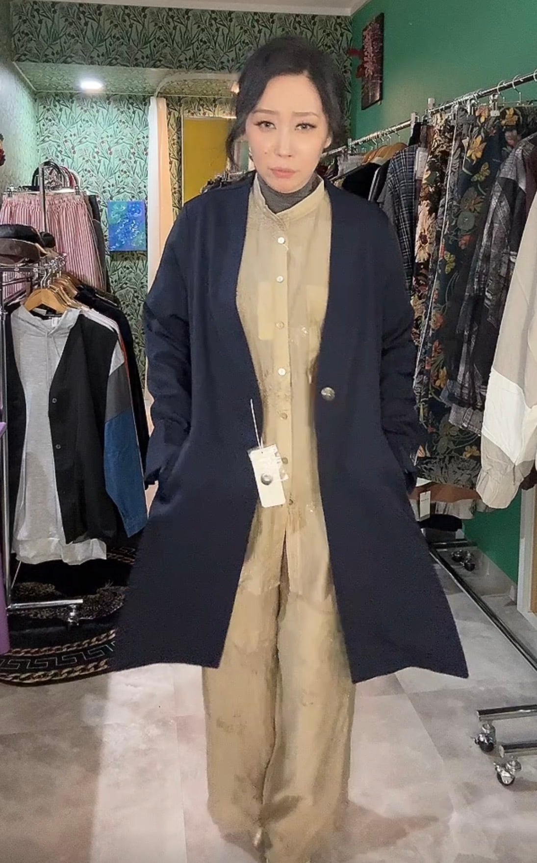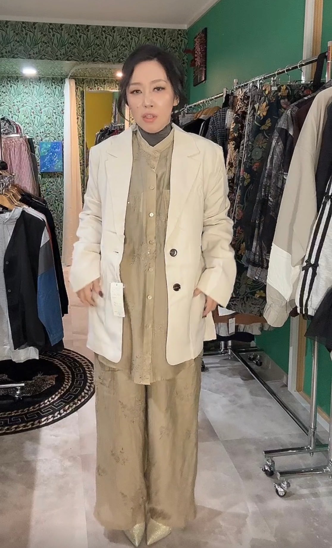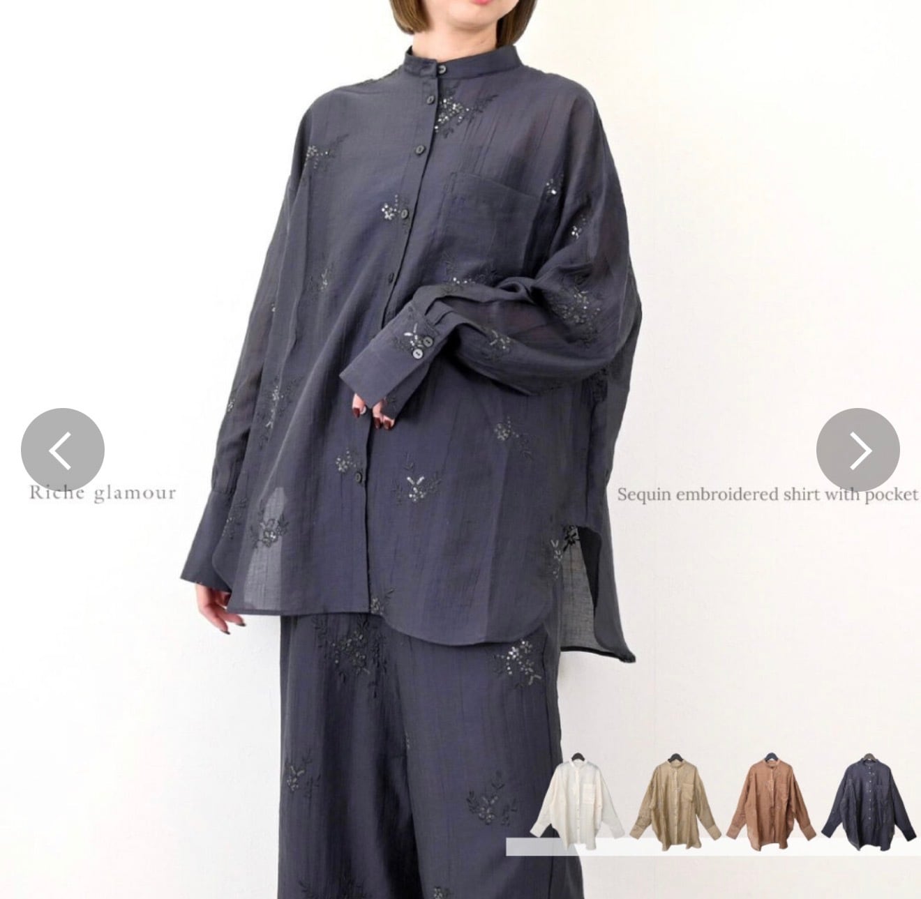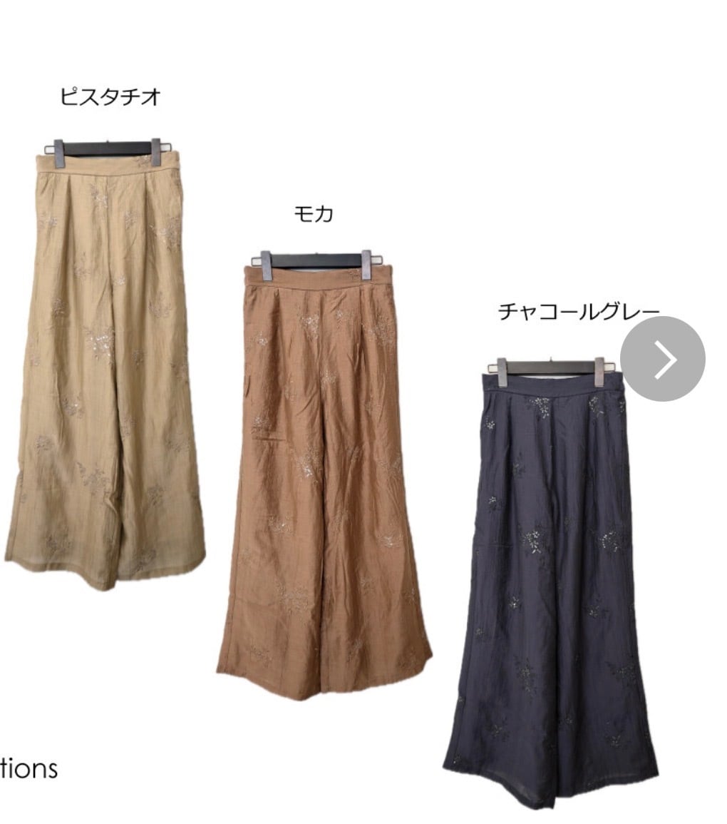 楊柳スパンコール花刺繍シャツ•パンツ(セットアップ可)