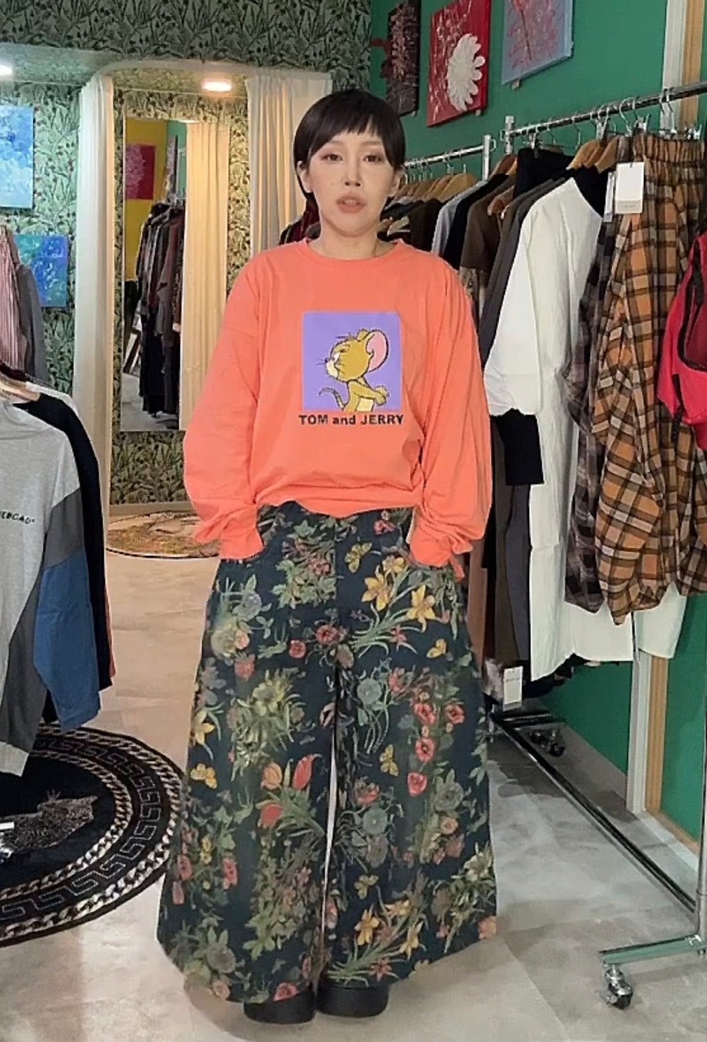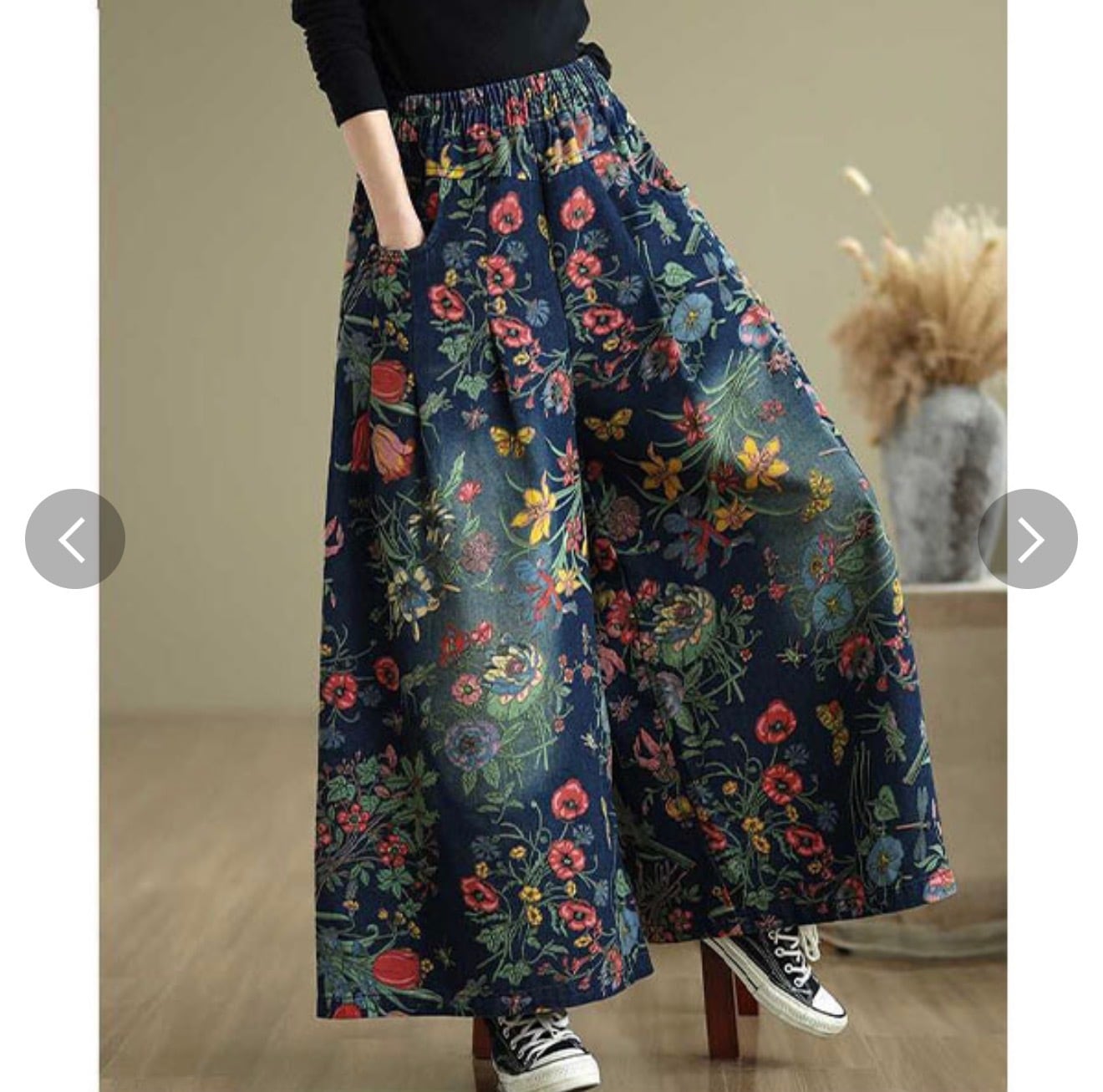 レトロフラワープリントワイドデニム
