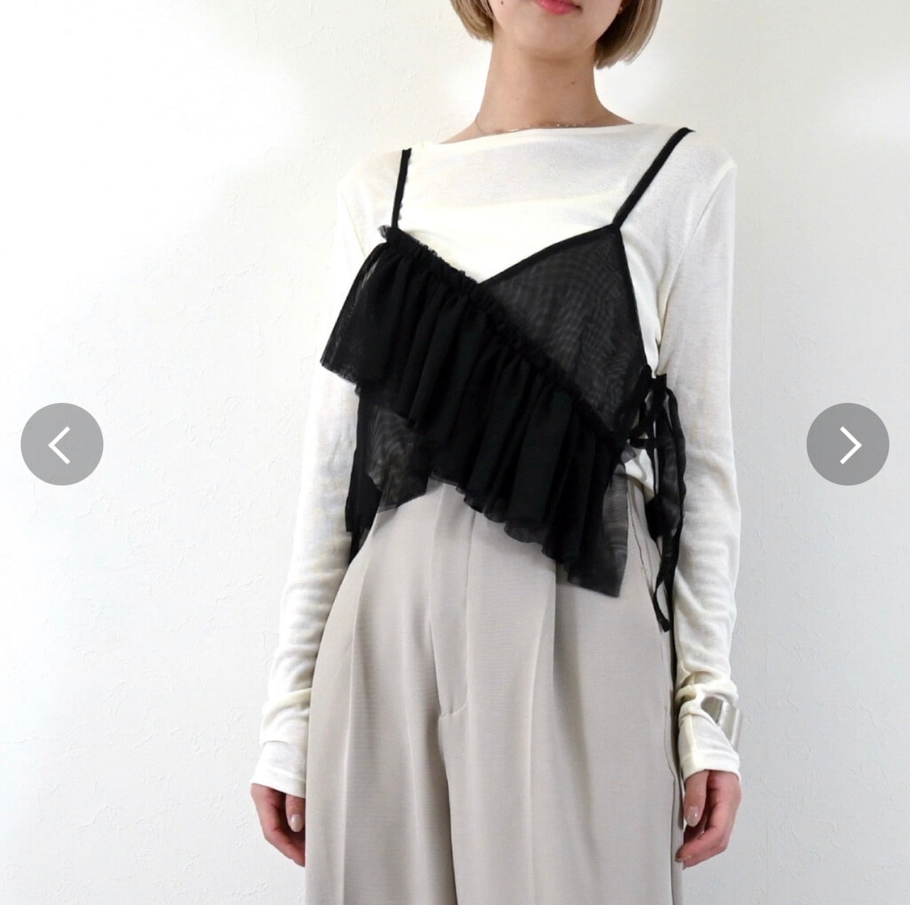 アイボリーが入荷♪チュールアシンメトリーフリルビスチェ