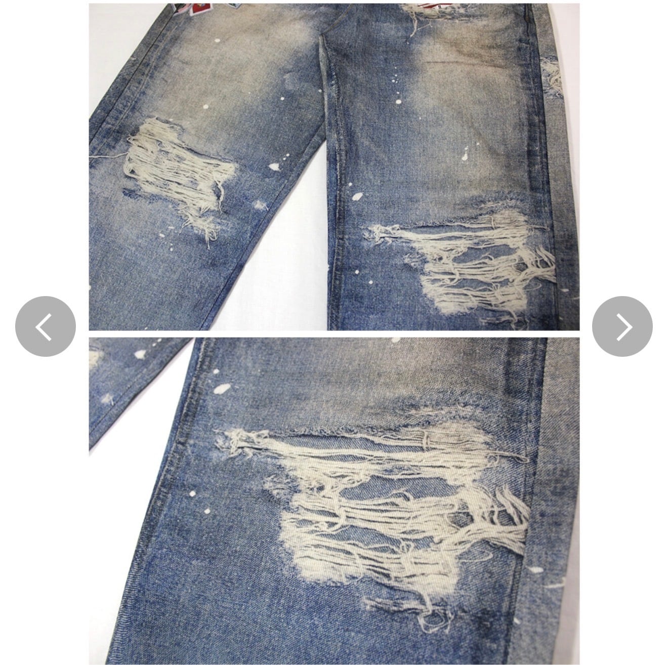 転写デニムチャームプリントカーブパンツ(デニムの様に見えます)