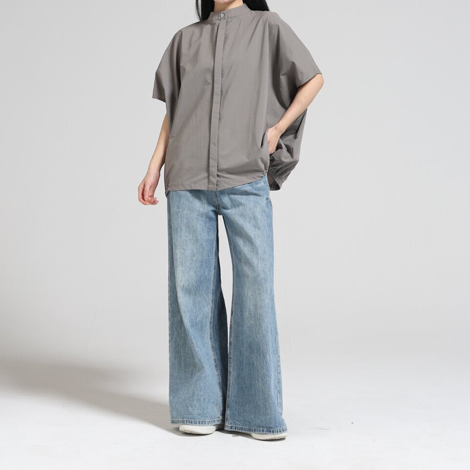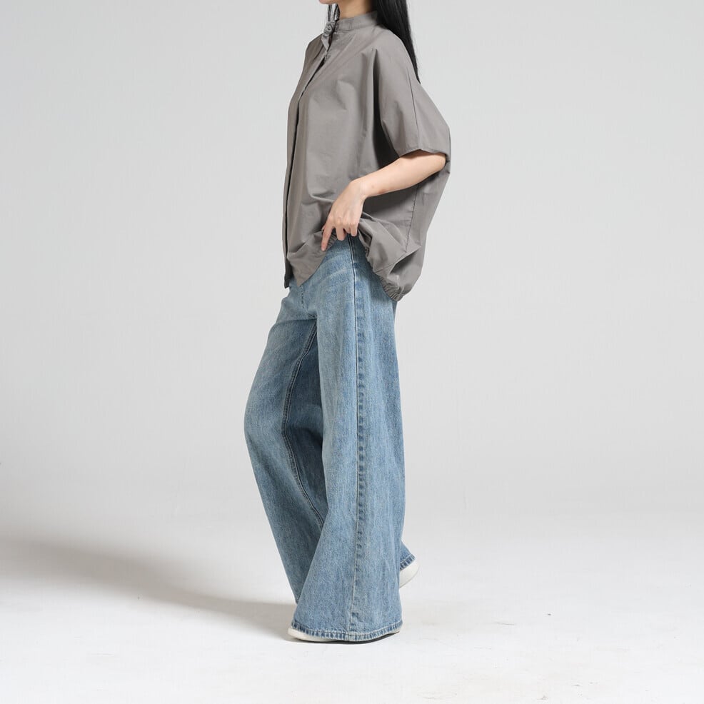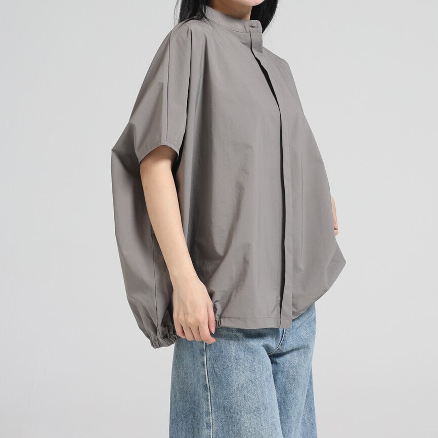 裾ゴム比翼シャツブラウス