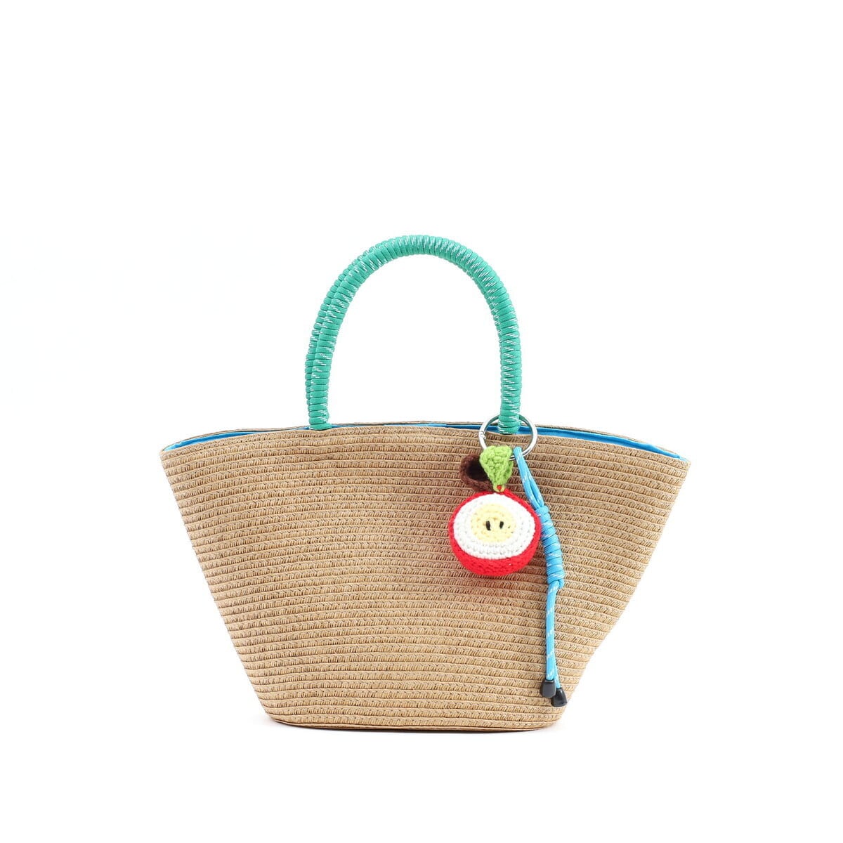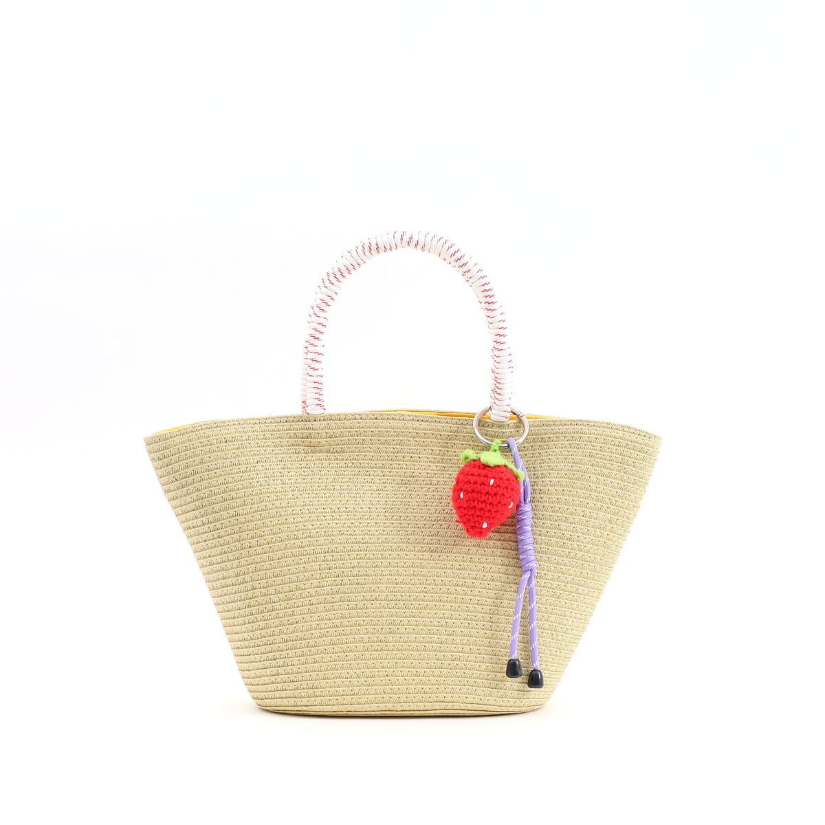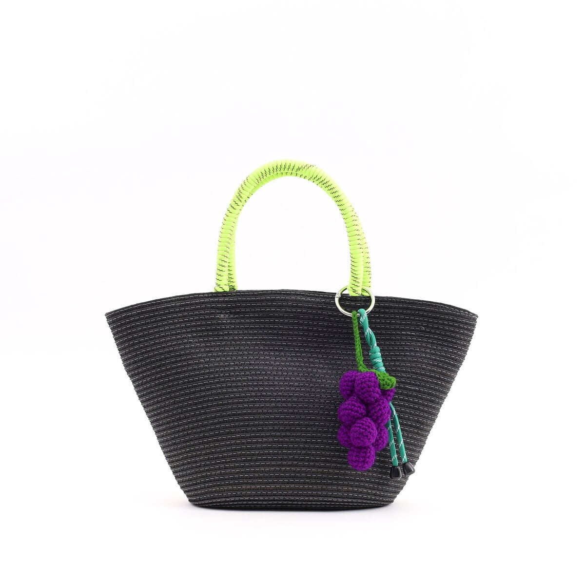 ブラック(ぶどうチャーム付き)、ナチュラル(いちごチャーム付き)、キャメル(リンゴチャーム付き)、グレー(みかんチャーム付き)