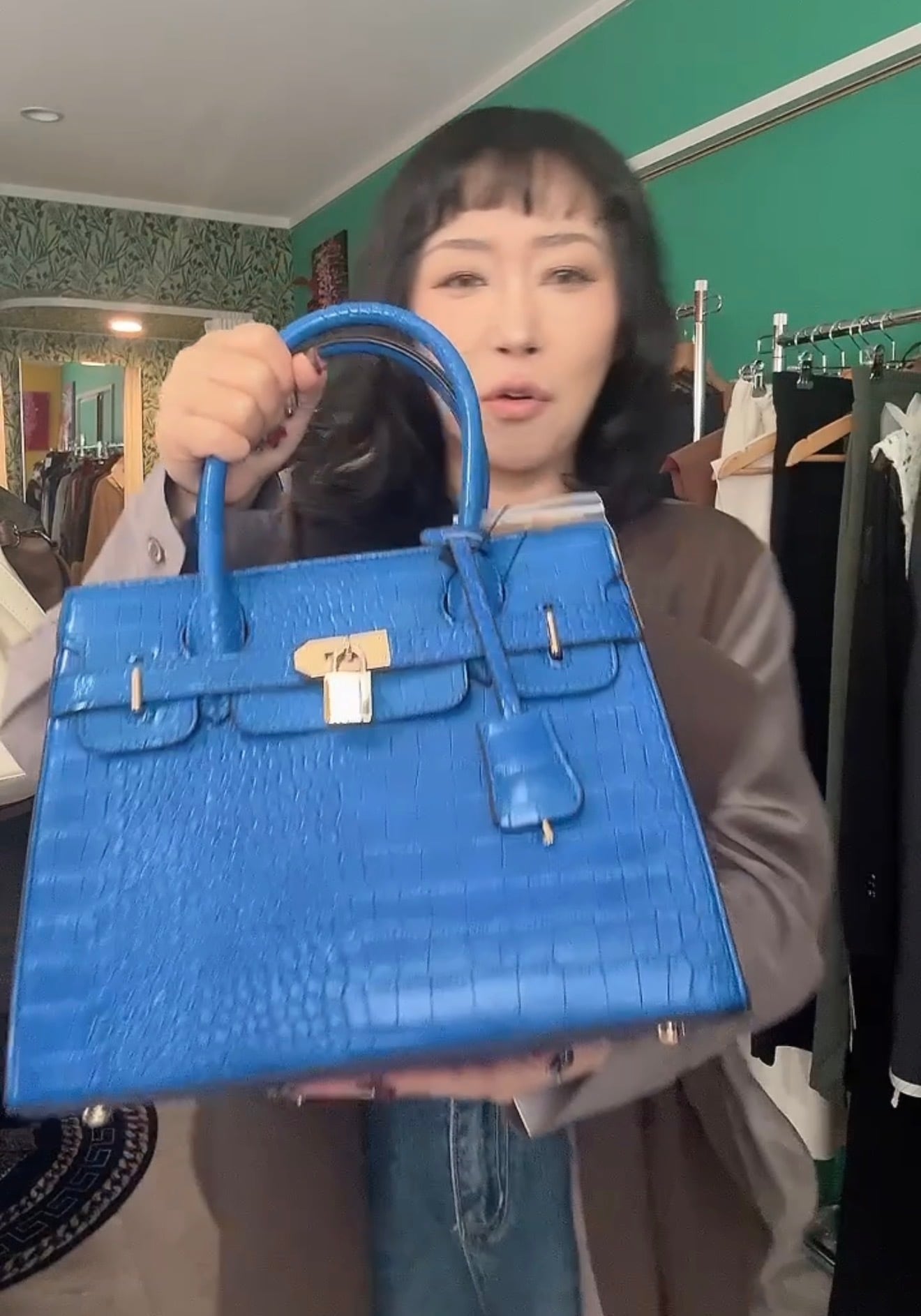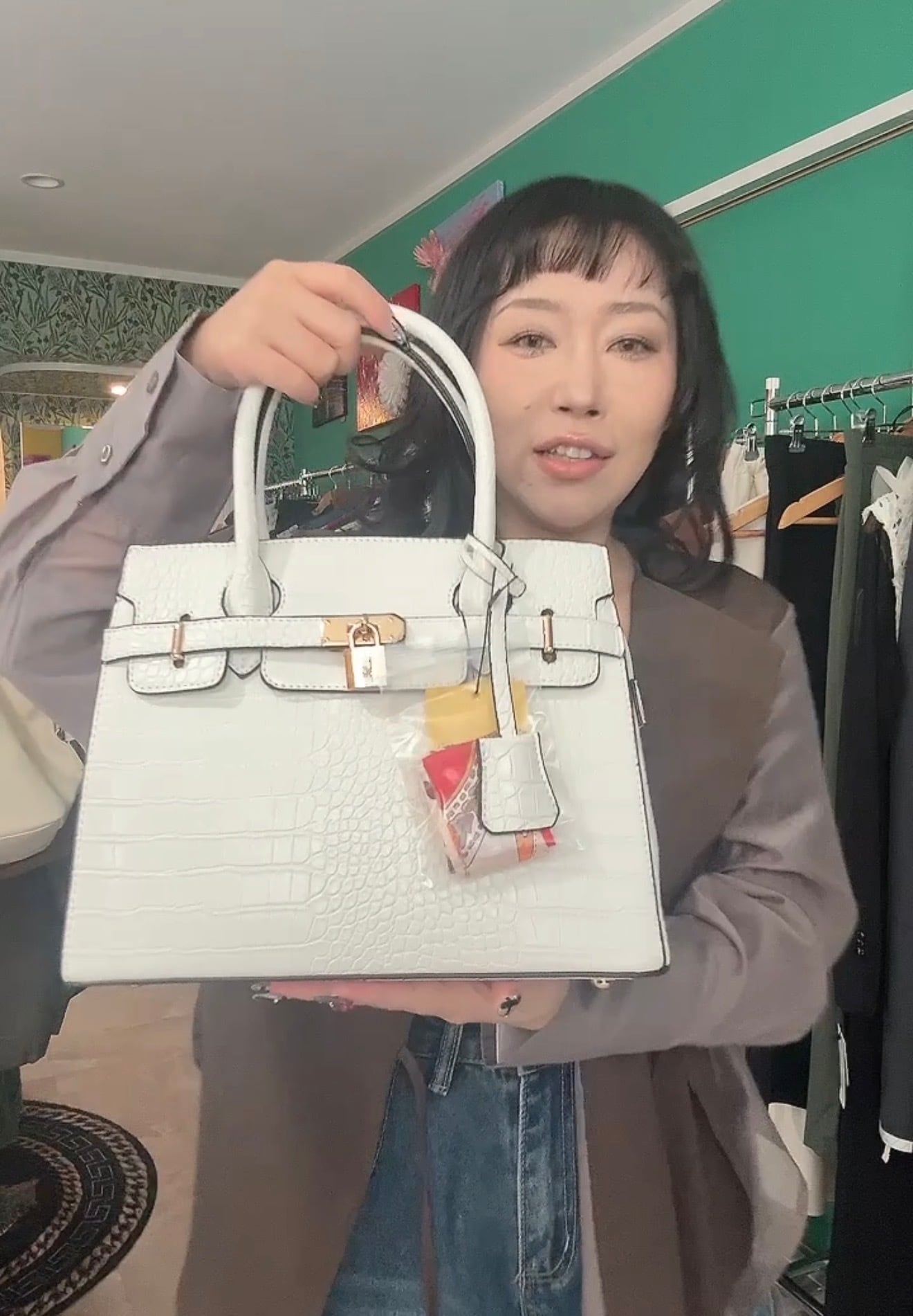 鍵付きクロコ方押しバッグ